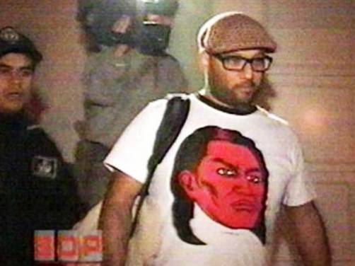 Cherman portando una camiseta con el rostro de su Tupac Amaru postmodernoFoto: Terra