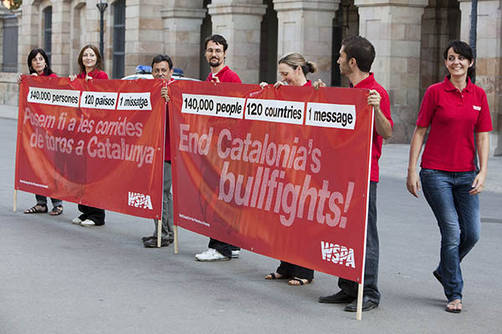26 de julio de 2010, Barcelona, España: la Sociedad Mundial para la Protección Animal (WSPA) entrega hoy una carta con 140.000 firmas procedentes de 120 países a Ernest Benach, Presidente del Parlamento Catalán. La carta está dirigida a todos los parlamentarios de Cataluña y expresa el apoyo internacional a la Iniciativa Legislativa Popular (ILP) y el llamamiento para poner fin a corridas de toros en Cataluña (ver nota 1). Las firmas llegaron de todo el mundo a través de las páginas de la WSPA en Internet y son un apoyo a la plataforma PROU, formada por ciudadanos y ciudadanas catalanes que trabajan por la prohibición de las corridas de toros en la comunidad autónoma catalana. PROU ha presentado esta ILP, que se votará en el Parlamento el próximo miércoles 28 de julio. “El interés y actividad internacional sin precedentes que ha generado esta campaña entre el público y los medios de comunicación en los últimos meses, demuestra la escala y la difusión del apoyo a una prohibición vinculante de las corridas de toros en Cataluña,” ha declarado Mike Baker, Director General de la WSPA Internacional. “El mundo mira a Cataluña esta semana. Los parlamentarios catalanes tienen la oportunidad de realizar una declaración audaz sobre la modernidad de la región rechazando la continuación de esta práctica cruel y obsoleta.”Durante la entrevista con los representantes de la WSPA, el Presidente Benach ha reiterado su intención de votar a favor de la prohibición de las corridas de toros en Cataluña, tal y como ha declarado públicamente en anteriores ocasiones. La prohibición de las corridas de toros en Cataluña estaría acorde con una tendencia emergente, ya que cada vez más autoridades locales de todo el mundo están prohibiendo esta práctica. En España, las Islas Canarias ya han prohibido las corridas de toros. También lo han hecho varias localidades en Ecuador, Venezuela, Francia, Portugal y Colombia. La prohibición en Cataluña sentaría un ejemplo en España a seguir por otras comunidades autónomas y para que la crueldad de las corridas de toros pase a la historia.La votación de la ILP tendrá lugar en el Parlamento de Cataluña el próximo miércoles 28 de Julio a las 10h00. Los representantes de PROU (http://www.prou.cat/castellano/index.php) celebrarán una rueda de prensa inmediatamente después del resultado de la votación en la sala de prensa del mismo Parlamento. La rueda tendrá lugar en inglés, francés, castellano y catalán.