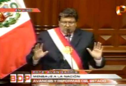Un pasaje del discurso que generó mucha tensión en el hemiciclo del Congreso de la República. Los congresistas nacionalistas arengaban contra las palabras de Alan García.