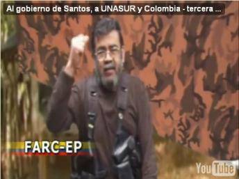 A siete días de la posesión de Juan Manuel Santos como presidente de Colombia, la guerrilla de las FARC difundió el jueves un video dirigido “al Gobierno de Santos, a UNASUR y Colombia”. En la cinta, fechada “julio de 2010 en las montañas de Colombia”, puede verse al líder de las FARC Guillermo León Sáenz, alias Alfonso Cano, hablando a cámara sobre su crítica visión de la gestión del Gobierno de Álvaro Uribe y proponiendo un diálogo a su sucesor “para buscar salidas políticas”. Vestido con un chaleco con armas, frente a un fondo camuflado, Cano plantea debatir sobre el polémico acuerdo militar suscrito en 2009 entre Bogotá y Washington, que autoriza a las tropas estadounidenses el uso controlado de siete bases en territorio colombiano.