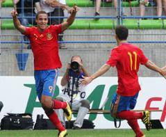 Rodrigo celebra el único gol de España contra Francia en la final del Europeo sub 19