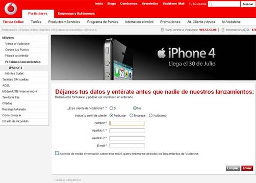 En contreto, las tres grandes esperan robarse clientes entre sí de la forma menos disimulada. Cuando intentas llegar a la información sobre el iPhone 4 todas piden una serie de datos como tu nombre, el número de teléfono, si eres o no de la compañía y qué clase de operación y contrato estás dispuesto a firmar por tener este preciado objeto de deseo.