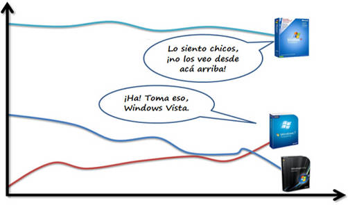 Por otro lado, por muy bien que le esté yendo a Windows 7, XP aún es por lejos el amo y señor de los sistemas operativos. De hecho, Windows XP es más usado que todos los demás SO juntos (incluyendo a Mac OS X y las distintas distribuciones de Linux). Y, a pesar de que gracias a la salida de Windows 7 ha hecho que disminuya considerablemente la cantidad de gente que usa XP, todavía le falta bastante para bajar siquiera del 50% de cuota.