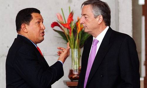 El presidente venezolano recibió en jueves en Caracas al secretario general de Unasur, Néstor Kirchner, para abordar la crisis entre Colombia y Venezuela. No hubo detalles sobre los discutido en esta reunión.