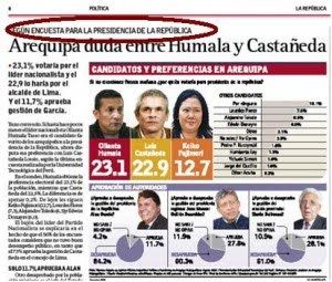 La denuncia de Pepitas (blog que reaparece con primicias y hallazgos) merece una profunda investigación. Por otro lado, viendo las cosas desde el análisis ¿por qué la presidencia de la República levanta este sondeo? Pues por el hecho que Ollanta Humala está primero en las encuestas. Coincido con Juan Carlos Tafur en que al doctor Alan García le conviene convertir a Ollanta Humala en un cuco chavista para así favorecer por reacción a su candidata Keiko Fujimori.