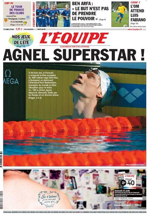 A los 18 años, en estilo libre el francés ha ganado los 400 metros de estilo libre, en Budapest, dominando al alemán Pul Biedermann, el campeón del mundo.