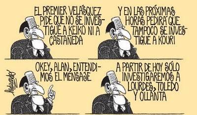 Como quiérase, el Premier sale en defensa primero de Luis Castañeda Lossio, alcalde de Lima con indicios de corrupción como otrora ningún funcionario municipal, luego en defensa de Keiko Fujimori, suplicando a la Fiscalía que no se metan con ella. Ya antes ha señalado, entre líneas, que dejen en paz a Alberto Fujimori. Luego pedirá que no se mencione a Alex Kouri, lo cual no sería el punto final ¿Por qué? pues simplemente por una razón: mañana pedirá que no se investigue a este gobierno y mucho menos al actual presidente Alan García. Heduardo y su genialidad reflejan este hecho como nadie.