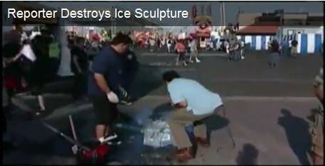 Un periodista puso furioso a quien entrevistaba al destrozarle su estatua de hielo... vean las imágenes…