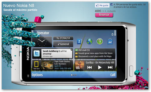 Como no podía ser de otra manera, estamos hablando del nuevo Nokia N8, un terminal de última generación que ya está disponible previa reserva en la página oficial de la finlandesa. Esto quiere decir que todos los consumidores españoles que quieran hacerse con este modelo, podrán acceder a la página para recibirlo a partir de la última semana de septiembre. Justo cuando Nokia tiene previsto ponerlo a disposición del gran público.