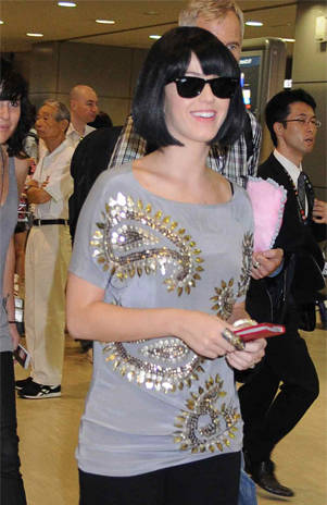 En la promoción de ‘’Teenage Dream’’, Katy Perry decidió usar una serie de coloridas pelucas en muchas de sus apariciones pública, sin embargo la apariencia que presentó en Tokio creo dudas. Tendremos que esperar algunos días para saber si la cantante se cortó el cabello o fue otro de sus disfraces.