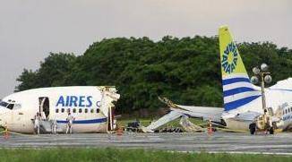 En el Boeing 737-700 de la compañía Aires viajaban 131 personas y cuando estaba a punto de aterrizar, según varios testimonios, impactaron uno o varios rayos, en medio de una intensa lluvia. El piloto evitó que la aeronave se saliera de la pista pero en el impacto “se desprendieron los motores del avión y se partió en tres segmentos”, explicó el general Orlando Páez Barón, director de seguridad ciudadana de la Policía Nacional.