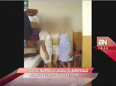 Las supuestas cuatro alumnas de una escuela de suboficiales de la región andina de Ayacucho, en el sur peruano, aparecen en varias fotografías en ropa interior e, incluso, una de ellas muestra sus pechos, informó Frecuencia Latina de la televisión peruana.