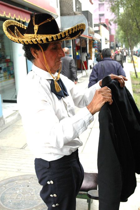 Meditabundo, nos cuenta que se inició en la música hace cuarenta años. "Podré dejar de lustrar botas, pero nunca dejaré de cantar mis rancheras", nos dijo.