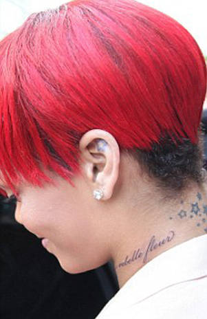 "Rebelle Fleur", se traduce como "Flor Rebeldía" y no "Flor Rebelde" es por eso que la prensa inmediatamente se percató del error. Afortunadamente para la cantante, el tatuaje puede ser eliminado después de tres meses.