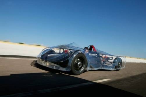 Una carrocería ligera, transparente y aerodinámica cubre el viejo Lola Indy.