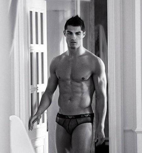 Cristiano colgó algunas imágenes de la grabación en su propio Twitter, donde se le ve sin camiseta y sentado en una cama redonda.