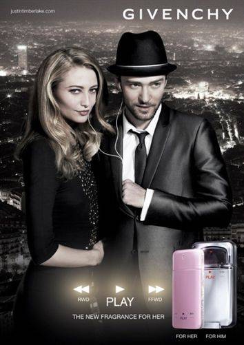 Cada vez son menos las ocasiones que podemos ver al ex líder de N'Sync sobre los escenarios y, sin embargo, ahora es más frecuente que Justin Timberlake nos obsequie con su imagen posando como modelo publicitario para todo tipo de marcas. La última ha sido la nueva fragancia de Givenchy, Play, para la cual posa junto a la actriz de 'Luna Nueva' Noot Seear. Lo extraño: se trata de una fragancia femenina.