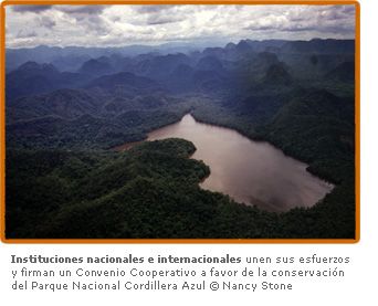 El compromiso e interés para asegurar la sostenibilidad del Parque Nacional Cordillera Azul (PNCAZ) ha impulsado a que importantes organizaciones internacionales suscriban el Convenio Cooperativo denominado "Promoviendo la sostenibilidad del Parque Nacional Cordillera Azul a largo plazo", el pasado mes de diciembre en la ciudad de Lima, ante la presencia de representantes de diversas organizaciones nacionales e internacionales vinculadas a la promoción del uso adecuado de los recursos naturales en el Perú. Desde su creación en mayo de 2001, el trabajo en el Parque Nacional Cordillera Azul (PNCAZ) ha involucrado a una serie de instituciones privadas que brindan su apoyo al Estado peruano, generando así un modelo de gestión participativa. Instituciones como The Field Museum realizando los primeros estudios biológicos de Cordillera Azul en apoyo a su posterior categorización y luego de más de 7 años de creación continúan brindando todo su apoyo técnico. CIMA, desde su constitución en el año 2002 se ha dedicado permanentemente a apoyar al Estado en la conservación de PNCAZ y desde agosto de 2008 administra el área protegida mediante un Contrato de Administración Total de Operaciones por los próximos 20 años. Los logros alcanzados en más de siete años de creación no sólo se deben al trabajo del Estado y las instituciones arriba mencionadas sino también al apoyo recibido de manera constante y continua por parte de instituciones de cooperación como la Agencia de los Estados Unidos para el Desarrollo Internacional USAID/Perú, la Gordon and Betty Moore Foundation y The John D. and Catherine T. MacArthur Foundation. Suscribieron este Convenio Cooperativo: Paul Weisenfeld Director de la Agencia de los Estados Unidos para el Desarrollo Internacional USAID/Perú, Luis Solórzano Director del Programa Iniciativa Andes-Amazonia de la Gordon and Betty Moore Foundation, Steve Cornellius Director del Programa de Conservación y Desarrollo Sostenible de The John D. and Catherine T. MacArthur Foundation, Debra Moskovits Vice Presidenta de The Field Museum y Lucia Ruiz Ostoic, Directora Ejecutiva del Centro de Conservación Investigación y Manejo de Áreas Naturales - CIMA Cordillera Azul.