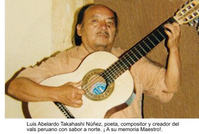 Disco de Oro por difusión de la Música Criolla, otorgado por el Diario Última Hora. Distinción el año 1988 por la Municipalidad de Ferreñafe, durante la gestión del Ing. Juan José Salazar García. Concierto de Homenaje al compositor Ferreñafano Don Luís Abelardo Takahashi Núñez organizado y auspiciado por la Asociación Cultural Taller De Arte Popular Llampallec interpretando canciones de su propia inspiraciòn. En su presencia se le tributó un justo reconocimiento por su aporte creativo al cancionero lambayecano el 30 de abril de 1988 en el Teatro Dos de Mayo en Chiclayo. Palmas Magisteriales, otorgado por el Ministerio de Educación. Laureles Musicales de la APDAYC – 2002. Medalla Juan Pablo Vizcardo y Guzmán, por el Congreso de la República, siendo presidenta de la Comisión de Cultura la reconocida actriz Elvira de la Puente. Homenaje a Luís Abelardo Takahashi Núñez organizado por la Municipalidad provincial de Ferreñafe por el alcalde Ing. Juan Salazar en el Museo Nacional Sicán de Ferreñafe con la participación de los elencos de música, danzas y décimas de la Asociación Cultural Llampallec, el 18 de enero del 2003. Homenaje de Reconocimiento a Luís Abelardo Takahashi Núñez organizado por la Asociación Cultural Llampallec y el Gobierno Provincial de Chiclayo con un programa de música, danzas y entrega de las siguientes distinciones: Medalla de la Identidad Cultural a Luís Abelardo Takahashi Núñez otorgada por la presidenta de la ACTAP Llampallec Rosario Olivera de Llancari, entregada a la hermana mayor de Luís Abelardo en su representación. Medalla de la Ciudad a Luís Abelardo Takahashi Núñez otorgado por el Gobierno Provincial de Chiclayo y su alcalde Sr. José Hildebrando Barrueto Sánchez, el martes 06 de diciembre de 2005 en el Salón Consistorial de la Municipalidad de Chiclayo. Concursos : Ganó el segundo puesto del Concurso de Música Criolla con el vals "ANSIAS", en Chimbote. Ganó el primer puesto del Concurso de Música Criolla de Trujillo con la marinera "LA GALLINA PONEDORA". Ganó el primer puesto de Música Criolla en el Festival de Huanuco con el vals "BAJO EL CIELO HUANUQUEÑO". Maestro Luis Abelardo, usted està vivo en nuestras mentes y corazones. Gracias por su legado, por sus consejos y su valiosa amistad. En especial le doy las gracias porque a su lado, en ese gran programa que ambos conducìamos en Radio Cadena : "Nuestra Mùsica se Pasa", pude beber de su fuente y aprender y ser todo lo que soy...lo amo y lo extraño màs. Mis respetuosos saludos a la familia Takahasi Bautista en el Japòn, mi abrazo a su señora esposa Nila, a mi chinito Abelardito y a todos en general. Que Dios lo tenga en su Gloria. LUCIA DE LA CRUZ CANTA "MAL PASO" http://es.youtube.com/watch?v=kAZJXYj4RpY Zoraida Arias Vàsquez nuestramusicasepasa@hotmail.com Recientemente Carmen Cruz, nuestro crédito nacional, excelente interprete de la música peruana, realizó una importante actuación en Buenos Aires, Argentina. Carmen Cruz, como admiradora y alumna del Maestro Luis Abelardo Nuñez, siempre lo lleva a todos lados en su mente y corazón, y le va a hacer honor cantándole su marinera "Sacachispas".