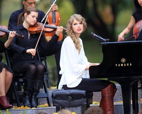 La linda cantante country, se unió a una pequeña orquesta para soprender a la multitud con las canciones de su último trabajo "Speak Now".