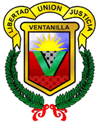 En la parte inmediata superior aparece en el horizonte un sol esplendoroso y vivificante, característico del paisaje ventanillense unido a su inmenso mar. Al centro, como protegido por la “V” la silueta de una casa, es decir, el techo, elemento primario y básico de nuestro hogar, razón fundamental cuya necesidad dio origen y forma a nuestra ciudad. En la parte superior del escudo está inscrito el nombre de la ciudad, no solo para identificarla, sino para enunciar a la ciudad, por donde quiera que se vea su emblema.Los agregados posteriores al Escudo están constituidos por cinta que orla la parte superior, no solamente para llenar un acabado decorativo, sino para portar las palabras: Libertad, Unión y Justicia, como lema de la ciudad y pueblo de Ventanilla. Ellas representan tres principios elementales de convivencia humana aprobados universalmente, sin la práctica de los cuales no sería posible el logro de una comunidad próspera y feliz.Y por último, los laureles, que adornan el dibujo tienen el símbolo de la gloria, aspiración humana a la que se supone, no escapa nuestro pueblo.HistoriaLa Historia De Ventanilla como distrito no tiene larga data pues su creación como tal recién se dio en 1969, teniendo como antecedente inmediato la ocupación de la Ciudad Satélite.