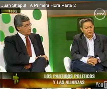 El día viernes 5 de Noviembre tuve la oportunidad de debatir con el vocero de la bancada aprista congresista José Vargas, en el programa A Primera Hora de Frecuencia Latina que conducen Aldo Mariátegui y Claudia Cisneros. En esta oportunidad estuvo en la conducción con Aldo la srta. Perla Berríos.Los videos los puede ver a continuación: