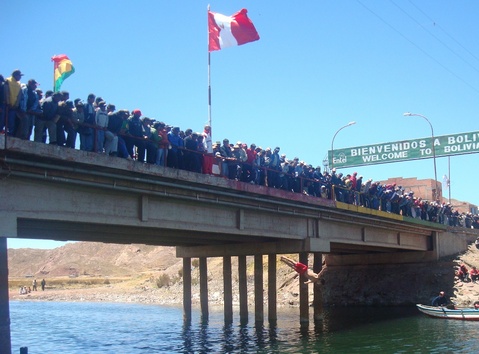 En horas de la mañana este miércoles 23 de septiembre, una, multitud de jóvenes procedentes de diferentes lugares del Perú y Bolivia se concentraron en el puente internacional de Desaguadero aproximadamente desde las 10.00am ante la presencia de centenares de espectadores en ocasión del “1er. Festival Acuático Binacional”. El evento fue organizado por la Federación de Juventudes Binacionales “Chakana Marka” que congrega a mas de 20 organizaciones juveniles de la zona de frontera y la Autoridad Binacional del Lago Titicaca – ALT con el objetivo de difundir y promocionar la práctica de los deportes acuáticos en el lago Titicaca. Por su parte, Francisco Sánchez representante de las juventudes binacionales asevero que en coordinación con los municipios de Desaguadero institucionalizaran la actividad a fin de que cada año se realice y ser incluidos en el calendario turístico de la región. La actividad acuática se inicio con una competencia sui generis de botes en un trayecto de 10 kilómetros desde la parte sur del rio Desaguadero, pasando por el puente internacional que une a ambos países. Luego, un quinteto de clavadistas provenientes del puerto bravo de Mollendo hicieron gala de sus habilidades, realizando clavados desde el puente hasta las gélidas aguas del Titicaca en plena línea fronteriza que divide ambos países. Entre los clavadistas, destaco la presencia del menor Dennis Ramos Aparicio que a sus escasos 9 años mostro sus innatas condiciones deportivas, arrojándose en perfectas maniobras acrobáticas en tres ocasiones, acto que mereció el efusivo aplauso de los asistentes en la línea de frontera. El lago Titicaca, reúne las condiciones técnicas para la práctica de los deportes acuáticos, y estas actividades generan expectativas en las poblaciones que les permiten generar su desarrollo socio económico con la presencia de los visitantes, indico Julián Barra de la ALT. En horas de la tarde, Rubén Medina conocido como el “Tritón del Titicaca” realizo un hecho peculiar remolcando dos embarcaciones con más de dos toneladas de peso integrada por músicos autóctonos una distancia de 3 kilómetros en homenaje al desaparecido nadador peruano Daniel Carpio conocido cariñosamente como “Carpayo”. El acto conto con la presencia de las principales autoridades de la ciudad binacional de Desaguadero y el Cónsul del Perú en El Alto Czibor Chicata, quien destaco la voluntad integradora de los pueblos fronterizos en este tipo de actividades. Torneo de pesca deportiva en el Titicaca El próximo domingo 27 de septiembre, en la localidad fronteriza de Villurcuni de la provincia de Yunguyo se realizará la segunda versión del “Derby del Salmon Dorado” para desarrollar el circuito turístico entre Perú y Bolivia. La pesca deportiva en el Perú no se ha desarrollado en su magnitud y esta es una gran oportunidad para que el sagrado lago de los andes peruano-bolivianos muestren su potencial para congregar a los aficionados de la caña de pescar y convertirse en el principal atractivo del continente sudamericano por la diversidad de ofertas turísticas, indico Barra Catacora de la ALT. En el programa se ha incluido un inusual partido de futbol de “cholitas” que representaran a Perú y Bolivia, disputando la Copa Binacional “Integración”.CARLOS ANDRADELA PAZ - BOLIVIA