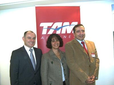 En la oficina de TAM en París, el Director General en Francia, Gilles Le Boulaire, y el responsable de clientes, Patrick Trougnoux. En el centro, la Agregada Turística del Consulado General del Perú en París, Maria Elena Corvest