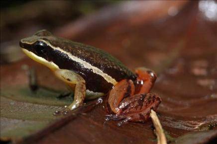 Entre los anuros hallados se encuentra un misterioso sapo con ojos color rubí, un diminuto sapo de nariz aguileña que se esconde entre las hojas muertas y una hermosa rana cohete con destellos color rojo en sus ancas.