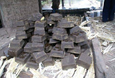 Cuando la miel llega a su punto es vaciada en moldes —tapas o cuartillos—, en donde al secarse, endurece, y puede ser comercializada.