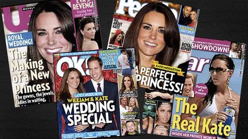 El mismo día en que la monarquía británica anunció la fecha y el lugar de la boda del príncipe Guillermo (el 29 de abril de 2011, en la Abadía Westminster), su futura esposa se convirtió en el rostro más visto en las revistas semanales de Estados Unidos: People, Us Weekley, OK! y Star, todas presentaron a Kate Middleton en su portada.