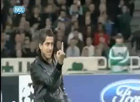 El espontáneo que le mostró el dedo a Lionel Messi en el partido frente al Panathinaikos