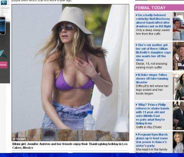 Y para la ocasión, Jennifer Aniston, quien ha pasado el día de Acción de Gracias en compañía de Chelsea Handler, ha recuperado el bikini color púrpura con el que ya la hemos visto en otras ocasiones, un sencillo conjunto de dos piezas con el que vuelve a demostrar que está espléndida a sus 41 años.