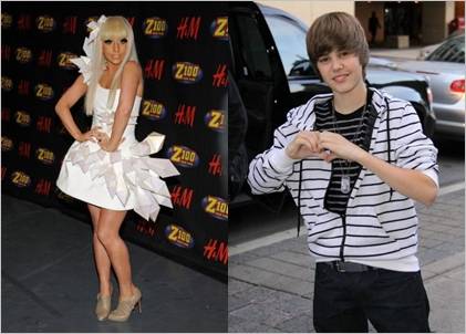 No tienen la misma edad, no aparecieron en la vida pública al mismo tiempo ni tienen un estilo similar, pero si hay algo que Justin Bieber y Lady Gaga tienen en común -aparte de la música pop en su más amplia expresiones que este 2010 lograron convertirse en los artistas más comentados del mercado mundial. Ella, consolidando una carrera y una imagen que viene desarrollando desde 2009, y él, tomando al mundo por sorpresa al pasar directamente desde su casa en Canadá y sus videos en YouTube, a lo más alto del Olimpo del pop.