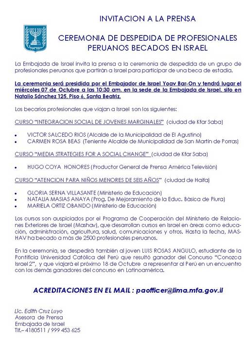 Ceremonia de despedida de Profesionales Peruanos Becados en Israel