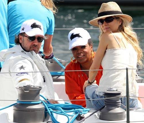 El viaje de Oprah Winfrey a Australia como broche de oro al cierre de su exitoso talk show está dando mucho de sí y más aún cuando se tiene como anfitrión de una jornada náutica al mismísimo Russell Crowe. El actor no ha dudado en acudir a la llamada de la popular presentadora y acompañado por su mujer, Danielle Spencer, Crowe ha surcado las aguas australianas a bordo del Eagle Rock.