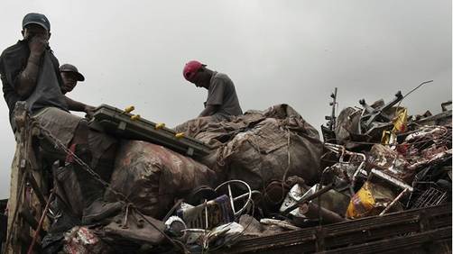 El vapor se eleva mientras sacan latas, botellas, cartón, papel y pedazos de metal, cualquier cosa que pueda ser reciclada.