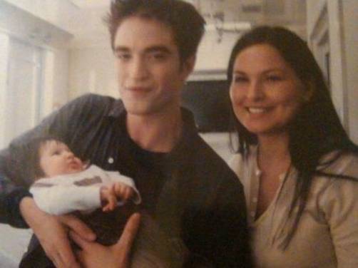 Robert Pattinson parece que se está entrenando para ser papá. Y es que en una foto publicada ayer mismo el super sexy Rob sostiene a un bebe en sus brazos. Y no se trata de una imágen de la futura hija que tendrá con Kristen Stewart en Amanecer. Nada de eso el bebé es totalmente real.