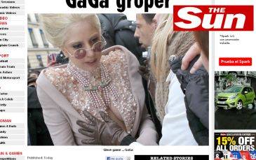 En una imagen que publica thesun.com.uk, se puede ver a GaGa (con cara de pánico y sin querer mirar siquiera a su agresora) mientras una fan (una mujer rubia de pelo largo con su mano cubierta con un guante) le toca sin disimulo una teta.