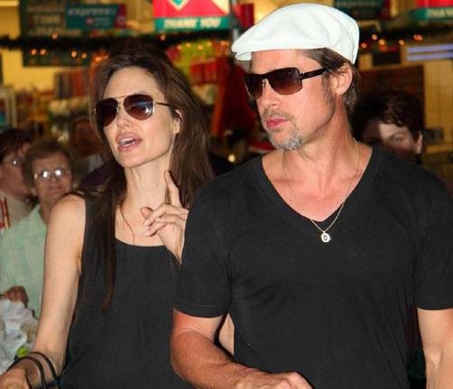 En esta imagen vemos a la pareja Pitt-Jolie, ambos vestidos de negro y con gafas de sol, realizando las últimas compras navideñas en un centro comercial. Sin duda, Namibia es uno de los lugares que mejores recuerdos trae a Brad y Angelina. Allí nació hace cuatro años su primera hija biológica, Shiloh Nouvel, y tras el buen trato que la actriz recibió del equipo médico donaron 300 mil dólares a dos hospitales públicos con el fin de mejorar sus salas de maternidad y otros 15 mil para una escuela y un centro comunitario que visitaron días antes del nacimiento de su hija.