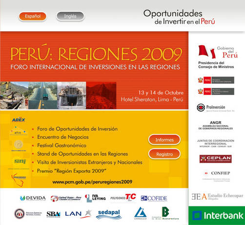 El día de mañana, el Presidente de la República Alan García estará participando en un evento imporatnte de promoción de inversiones en las regiones. Inscribirse por Red de PCM: www.pcm.gob.pe/reuregiones2009