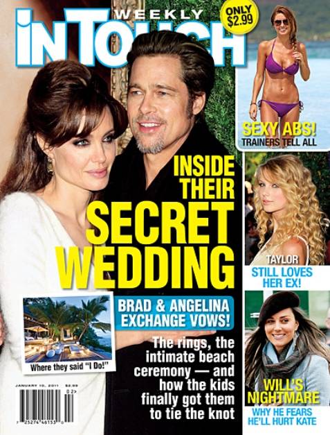 Al menos la pareja se lo toma con humor. Varios amigos de la pareja comentan que una de las diversiones de la pareja es precisamente comprar In touch para ver qué dicen de ellos esa semana. Son ya muchos meses apostando primero por el divorcio, luego por la relación de Pitt con Aniston, las infidelidades de Jolie, las idas y venidas de Pitt, la boda, el ensayo de la boda y demás zarandajas. Algún día acertarán.