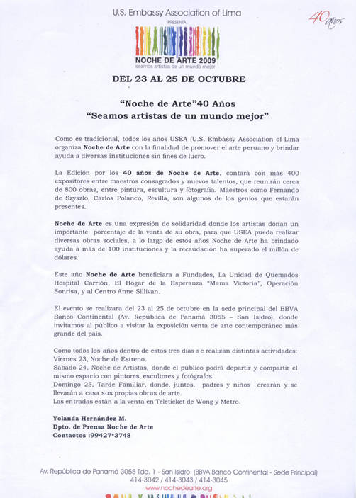 "Noche de Arte" 40 Años, "seamos artistas de un mundo mejor".