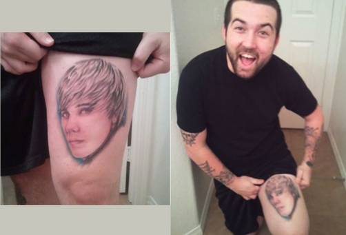 Un hombre que, en apariencia, es fanático del cantante pop Justin Bieber se tatuó la cara del joven en el muslo y ya es furor por la viralidad de Internet.