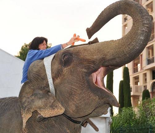 Sin demostrar ningún temor, Estefanía no solo caminó sobre los lomos de este ejemplar, sino que también se divirtió dándole de comer algunas zanahorias. Estefanía, quien conoce de primera mano la vida circense tras vivir por amor este tipo de vida, es la presidenta de dicho festival y presidirá su inauguración el próximo día 20.