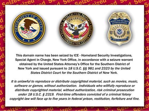Desde muy temprano esta mañana, sin embargo, los internautas que acceden a ‘rojadirecta.org’ se encuentran con tres escudos de las autoridades estadounidenses: uno del Departamento de Justicia, otro del IPR (Intellectual Property Rights) y el tercero del Home Security Land.