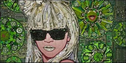 El retrato de Lady Gaga está hecho con fichas de casino, cepillos de dientes, encendedores, cartas, gafas de ver, perlas o tubos de pomadas.