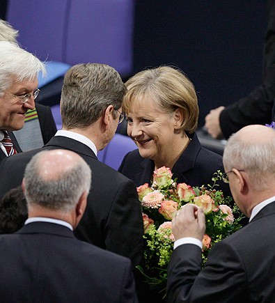 BERLIN.- La canciller alemana, Angela Merkel, fue reelegida hoy en su cargo por el Parlamento federal (Bundestag) para la que será su segunda legislatura, esta vez al frente de una coalición de gobierno de centro-derecha. Merkel consiguió imponerse con 323 votos a favor, frente a 285 en contra y 4 abstenciones. En total votaron 612 de los 622 diputados que conforman el nuevo Bundestag. La nueva coalición de gobierno, formada por la Unión Cristiano Demócrata (CDU) de Merkel y el Partido Liberal (FDP), cuenta con un total de 332 diputados en el Bundestag. Tras su primera legislatura al frente de una gran coalición con el Partido Socialdemócrata (SPD), Merkel, una conservadora de 55 años, gobernará ahora con su aliado natural del FDP, a cuyo líder, Guido Westerwelle, corresponderá el cargo de vicecanciller y ministro de Asuntos Exteriores. Los liberales tendrán otros cuatro ministerios -Economía, Salud, Cooperación y Ayuda al Desarrollo y Justicia-, a la CSU le corresponden tres -Defensa, Tráfico y Obras Públicas y Agricultura-, mientras que la CDU tendrá los siete restantes, además de la Cancillería. El puesto de mayor relevancia será el de Finanzas, que ocupará el hasta ahora ministro de Interior Wolfgang Schäuble, de la CDU, ya que el punto más destacado del pacto de coalición entre las tres formaciones concierne al apartado fiscal y las rebajas impositivas, como fórmula para combatir la crisis. Uno de los puntos claves del acuerdo de coalición pasa por una descarga fiscal gradual que empezará por 21.000 millones de euros en 2010, para llegar a 24.000 millones de euros a partir de 2013, lo que la propia Merkel ha admitido como arriesgado, dada la situación de las arcas públicas. Con esta coalición de centro-derecha Merkel repetirá un modelo que gobernó por última vez desde 1982 hasta 1998, en los 16 años que marcaron la era de Helmut Kohl, su mentor político, quien apenas caído el Muro de Berlín, hace 20 años, la convirtió en ministra de Medio Ambiente. Coretasía: Agencias DPA, AFP y EFE Fuente: http://www.lanacion.com.ar/nota.asp?nota_id=1191533