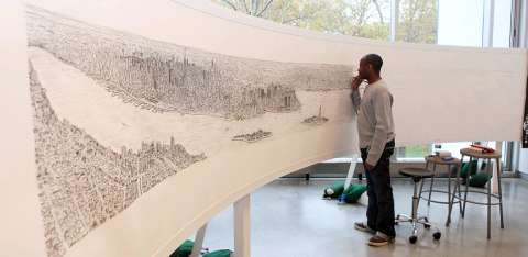 Se llama Stephen Wiltshire, es británico y nació en 1974. En esta ocasión, grabó en su memoria cada detalle de Nueva York y los plasmó en un lienzo de 5.5 metros de largo. Hizo una verdadera obra de arte, en la que se aprecian construcciones como el Empire State, Chrysler, entre otros. Tres días le tomó hacer el sorprendente dibujo.