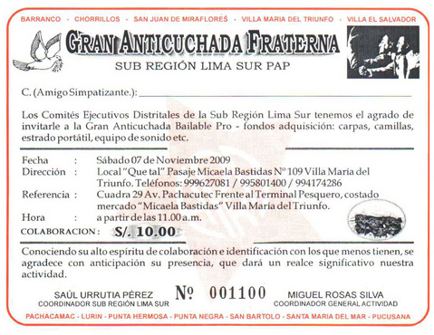Por medio del presente, a nombre de los distintos Comités Ejecutivos Distritales de la Sub Región Lima Sur, se les hace extensiva la INVITACIÓN a participar y colaborar en la GRAN ANTICUCHADA FRATERNA, la misma que tiene como objetivo lograr recaudar fondos para poder adquirir objetos que nos hacen hace mucha falta en nuestros distritos, tales como carpas, camillas, estrado portátil, equipo de sonido entre otros.